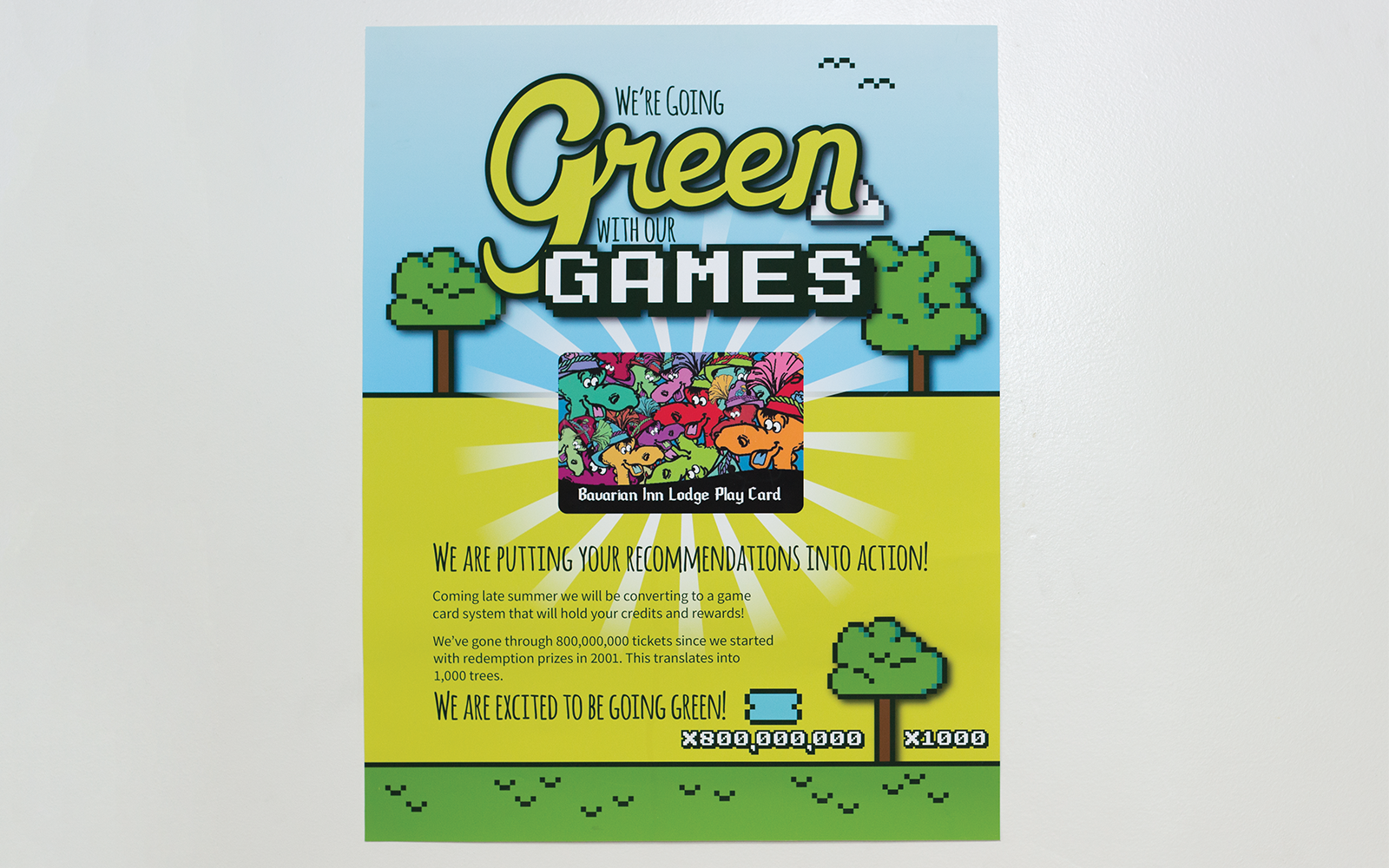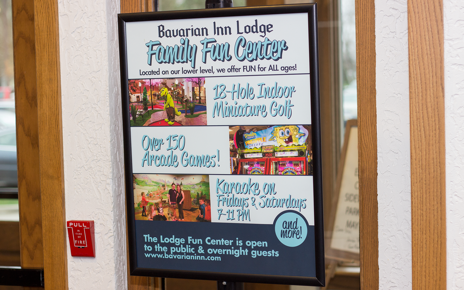 Signage and promotional material for the Bavarian Inn Lodge's Family Fun Center.