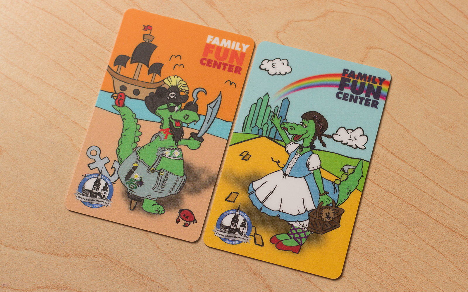 Designs for play card kiosks and games, both digital and adhesive wraps.